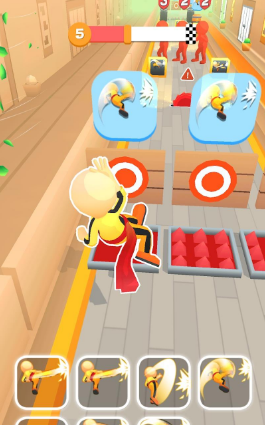 3、化身功夫巨匠来参与跑酷竞赛,冲刺中会呈现敌人,运用各种搏斗技巧来击败他们。