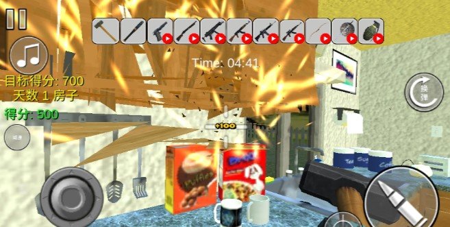 1.拿起你的枪和武器,摧毁房子里的一切。