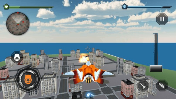 2、玩家能够控制飞机机器人在城市中停止探究和激战,不时击败更多的敌人。