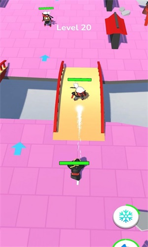 1.随意滑动画面寻找目标,避开对手的飞镖,同时攻击对手。