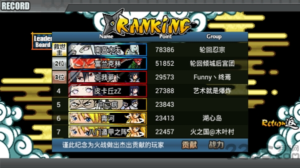 每个角色都有本人相应的必杀技(局部角色不止一个哦),当蓝色聚气条(查克拉)足够时就可以发出它们。