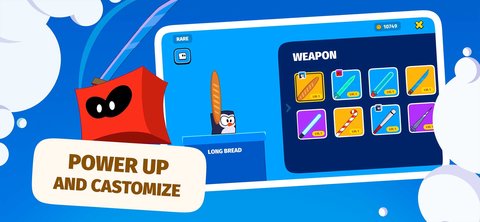 发现数十种有趣而猖獗的武器,从剑和斧头到面包和棒棒糖,这些武器将补充您的战士角色。用你的才能提升和惊喜你的对手。