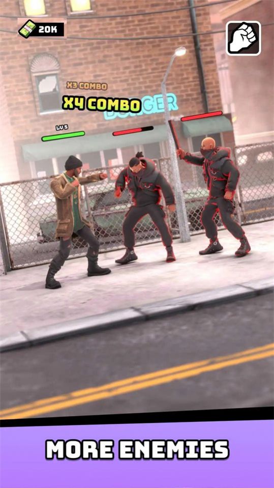 1.让你感遭到真实的街头搏斗气氛和刺激的战役体验。