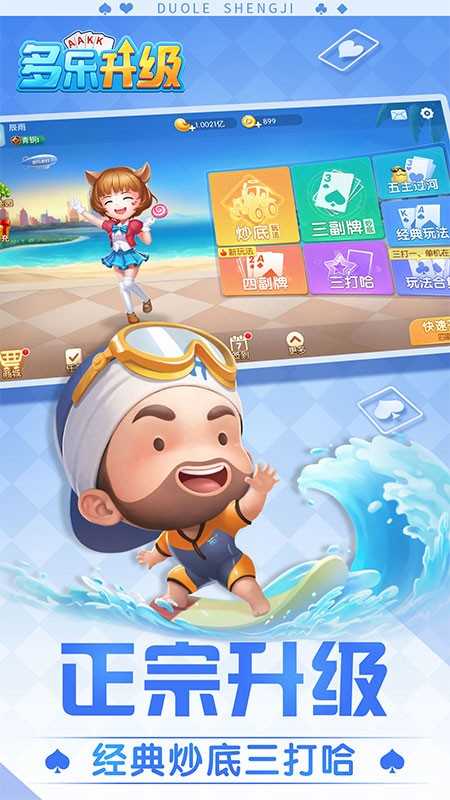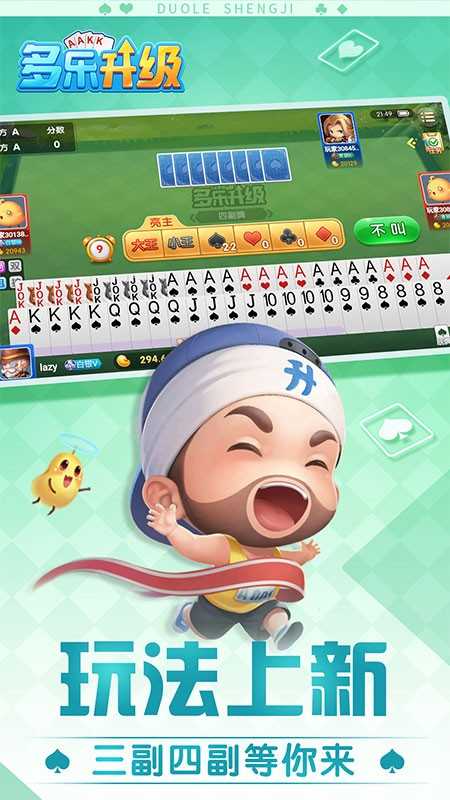 全新版本的多乐升级忠实还原了传统玩法,保留了抄底机制和无限翻倍的乐趣,棋牌爱好者一定不容错过!手机端轻松下载安装,无需注册登录,即可随时开启双升对局,即使独自一人也能尽享乐趣。