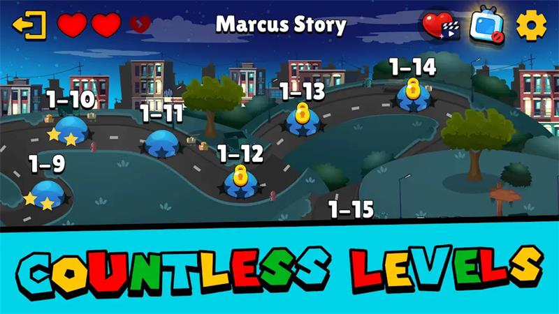 2、多样的关卡:游戏中有丰厚多样的关卡设计,每个关卡都有不同的地貌和障碍物,玩家需求灵敏运用兜帽兄弟的技艺和道具来处理各种问题。