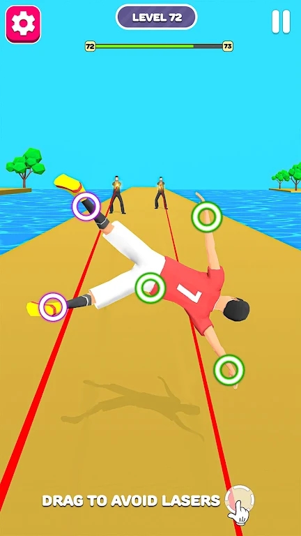 慢动作跑英雄内置搞怪角色战斗冒险玩法。控制角色四肢以进行场景动作模拟,在每一个场景中指挥角色做出正确的反应,由于操作特殊,且一次需要正确控制四肢,玩家将游玩到相当魔性搞怪的趣味玩法,以各种怪异姿势完成任务将使玩家感受相当搞怪爆笑的解压游戏体验。