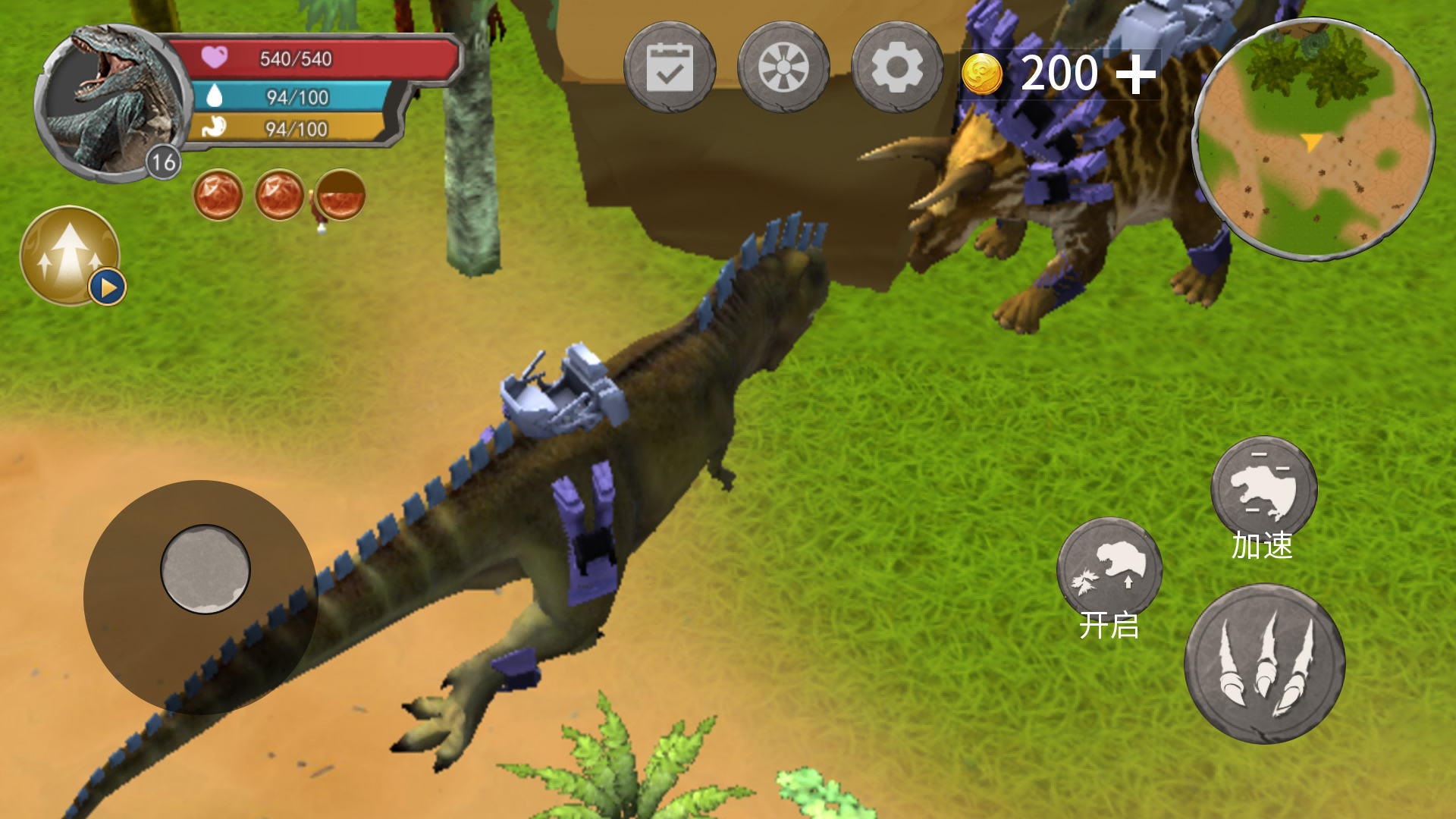 2、经过操作恐龙采集各种资源,并为他购置新的配备,晋级技艺,进步实力;