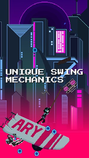 霓虹钩爪是一款休闲的冒险类游戏。不知道什么原因地球正在被黑洞吞噬,你为了逃离被吞噬的境地,使用钩爪抓取旁边的建筑物荡到另一边的建筑物,然后不断向上攀登逃离这个正在被吞噬的地方。游戏的背景是在一片喧嚣的霓虹区,你还可以通过游戏收集金币来解锁新角色,有的角色有特殊的技能能更加安全的攀登。