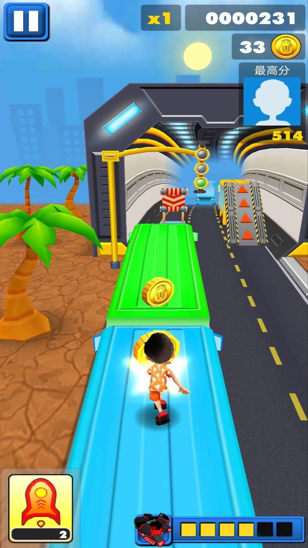3、在地铁轨道上奔跑,躲避障碍物,收集金币和道具;