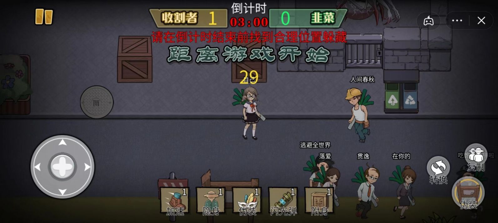 2、你可以在收割者到来之前有30秒的安全时间,快速的为自己寻找一个安全的地点,作为自己的藏身之处;