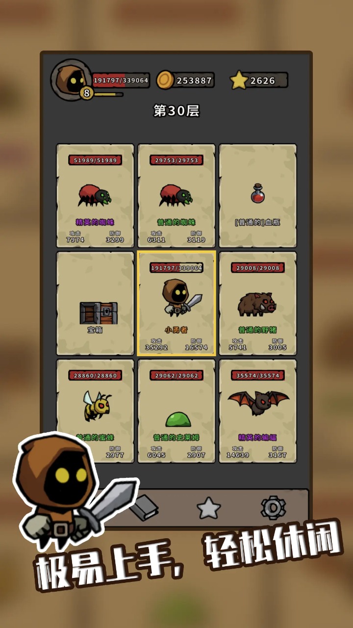 1、通过操作勇者来打败不同等级的怪物,获取奖励和成就;