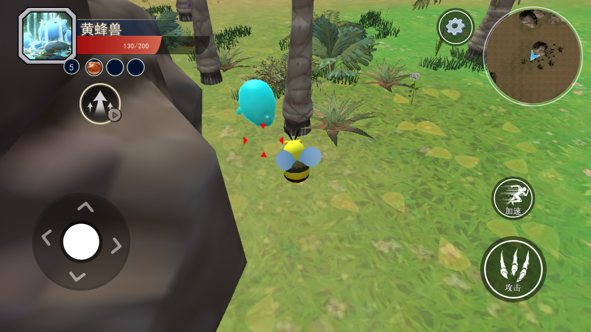2、虚拟遥感控制角色自由前进,还能收集各种资源和道具,建造属于你的营地;