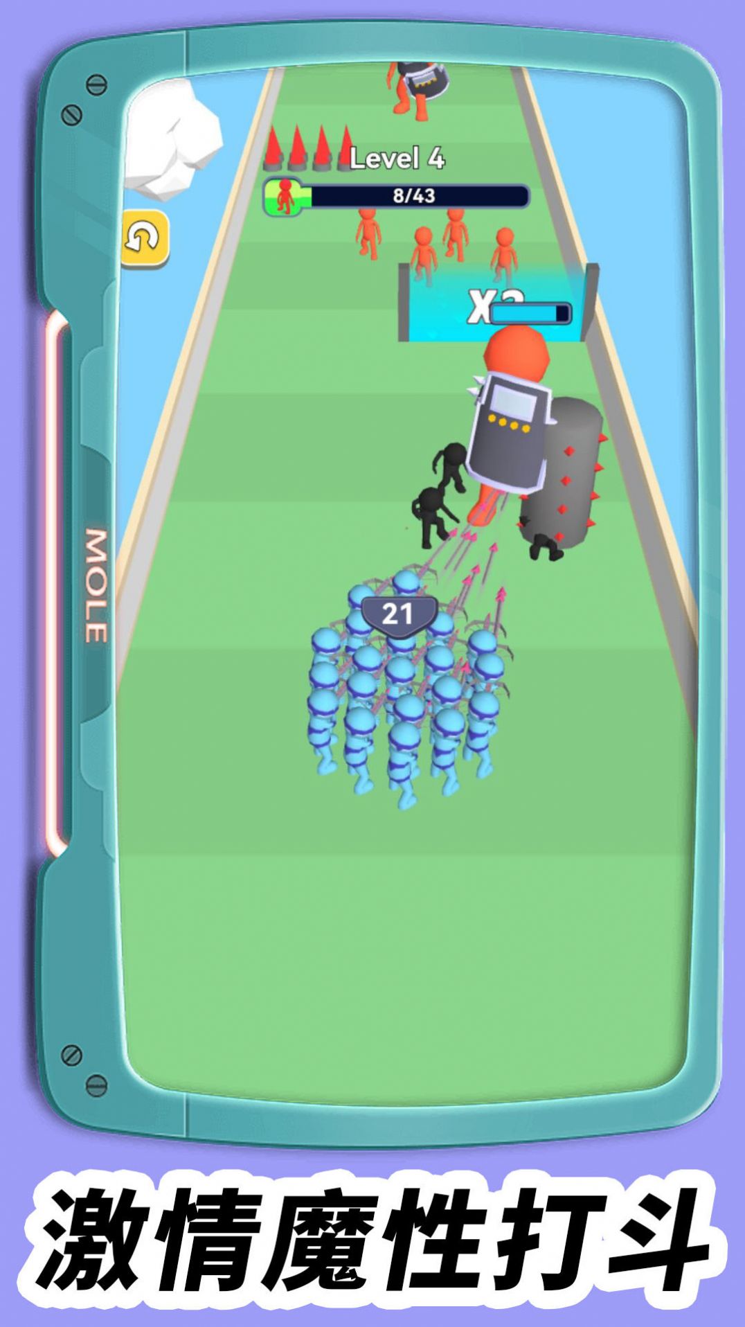 火柴人求生对决是一款独具创新的策略跑酷闯关游戏。在这款游戏中,玩家将扮演一位灵动的火柴人,加入于一场场紧张刺激的跑酷冒险。通过精准操控,沿途收集各类增益buff以增加人数,逐步组建起强大的火柴人军团。不畏前进,策略冒险,消灭前方一切障碍,获得最后的胜利。