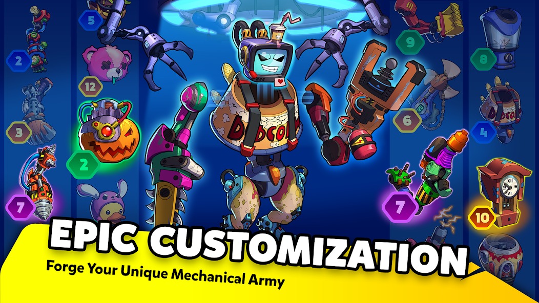 1、经过战役获取资料,对机甲进行晋级和改造,提升属性和战役力。