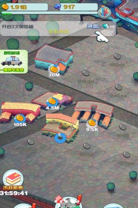 2、通过完成各类任务赚取经济收益,逐步解锁更多项目,推动城镇发展壮大;
