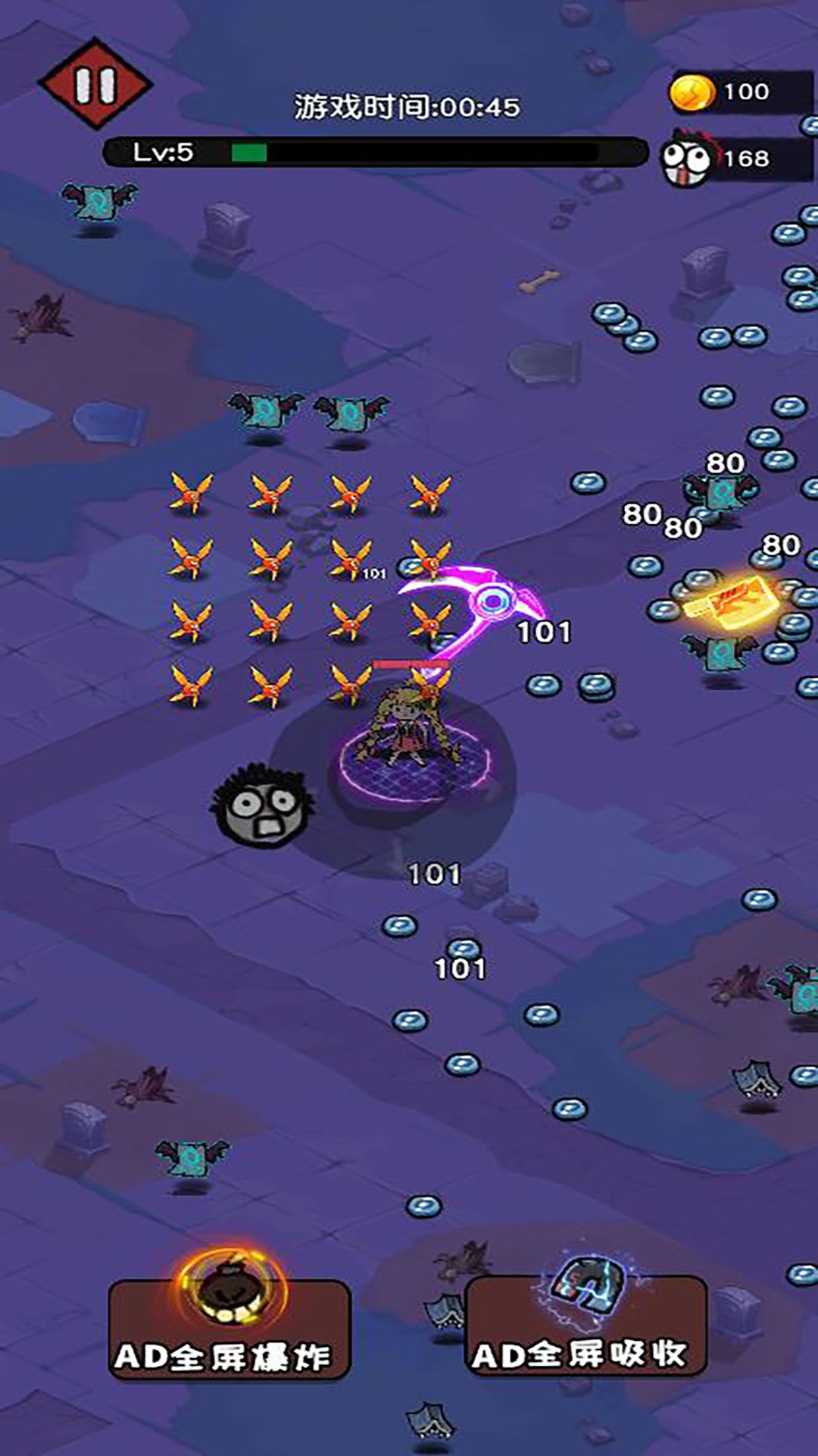 3、随着等级提升,玩家将面临更多挑战,可以使用金币升级武器,增强割草能力。