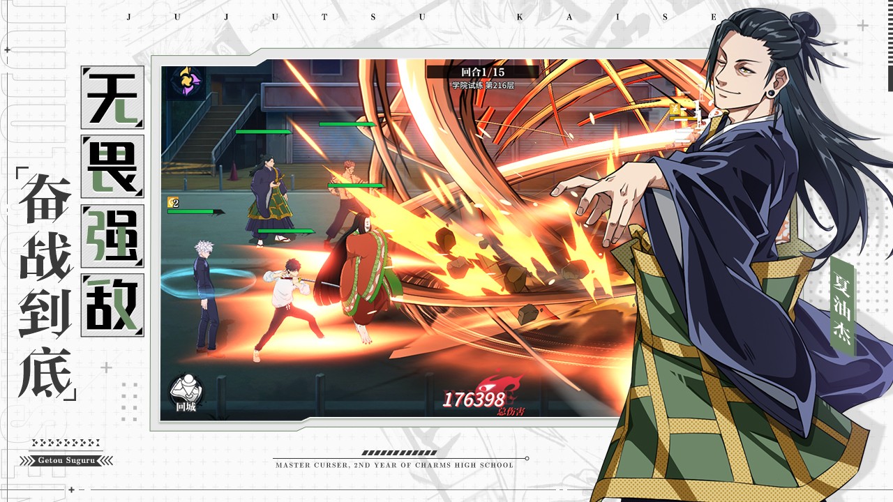游戏采用横版回合制战斗方式,易于上手,操作简单,玩法充满乐趣。面对各种强大的咒灵,玩家可以参与战斗并在其中不断成长。
