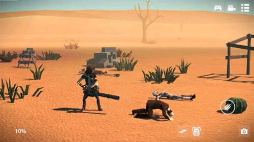 1、进入死亡荒地生存游戏后,左边按钮操控任务移动,右边为进攻;