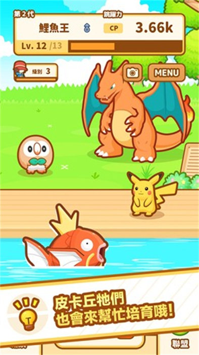 2. 游戏中加入了宝可梦元素,玩家可以邀请自己喜欢的宝可梦角色来帮助照料鲤鱼王。