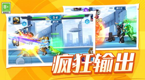 1.丰富多样的机器人角色,每一个机器人皆具备独树一帜的变身能力与技能。