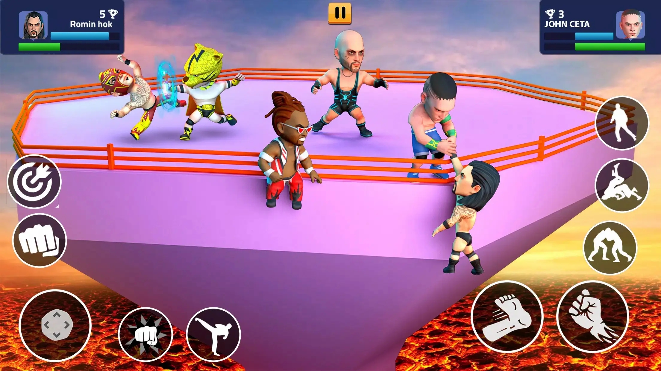 玩家可选择不同的大头娃娃角色,参与各种搞笑的摔跤比赛,体验轻松愉快的竞技乐趣,充满娱乐性。