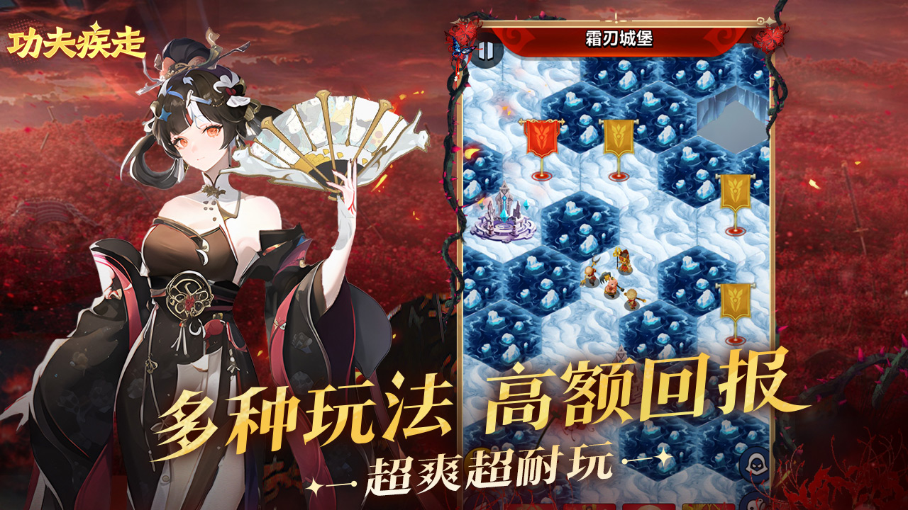 功夫疾走是一款冒险十足的武将养成战斗闯关游戏,以简单的角色跑酷移动,技能释放灯挂机操作让玩家体验超爽的割草冒险竞技。多样游戏玩法轻松战斗割草体验,简单操作即可完成装备和武将养成构筑,让玩家在多样场景中自由冲刺闯关,以数值对对碰的形式展现激烈而爽快的跑酷割草。