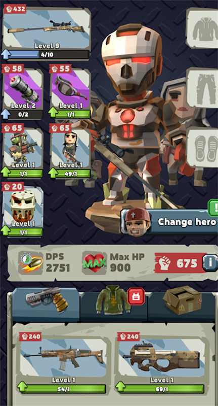 移动射击:玩家操纵角色在末日场景中来回移动,躲避敌人攻击的同时使用武器射击僵尸,通过消灭敌人获取经验升级。