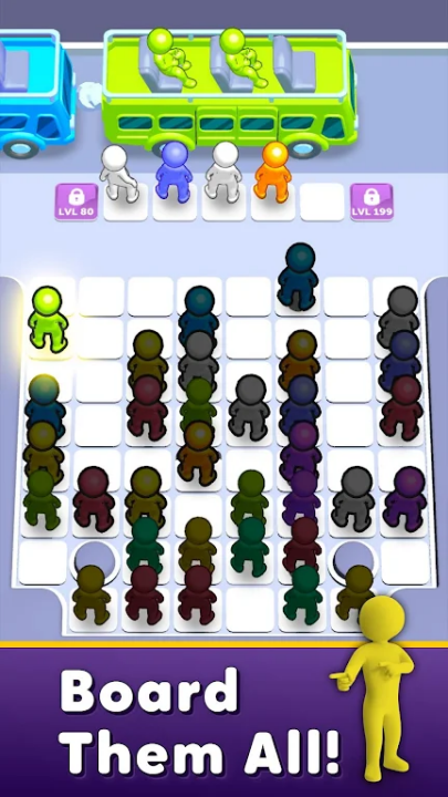 准备好迎接《巴士堵塞》吧!这款终极巴士游戏的精髓在于将乘客与巴士进行匹配,轻松又充满脑力。你需要解开趣味十足、色彩缤纷的谜题,为每位乘客扫清道路,开启他们梦想中的假期!在这款激动人心的益智游戏中,随着游戏的推进,你将遇到难度递增的关卡。你的目标是什么?巧妙地将乘客与正确颜色的巴士匹配!