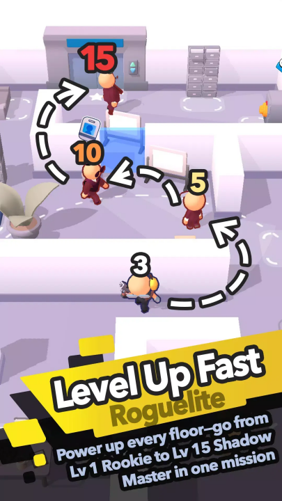1、快速升级——Roguelite 进程——每层都升级:一次任务即可从 1 级新手跃升至 15 级暗影大师。技能可随时重塑你的体型。
