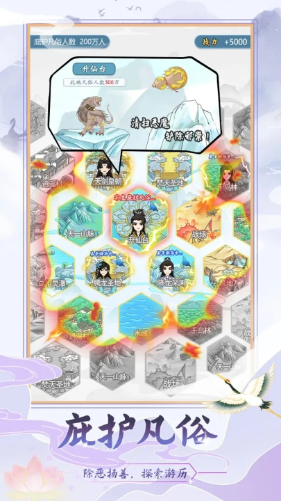3、梦幻梦美的仙境,多主题关卡,在修仙门派模拟器中隐藏副本有随机奖励获取。