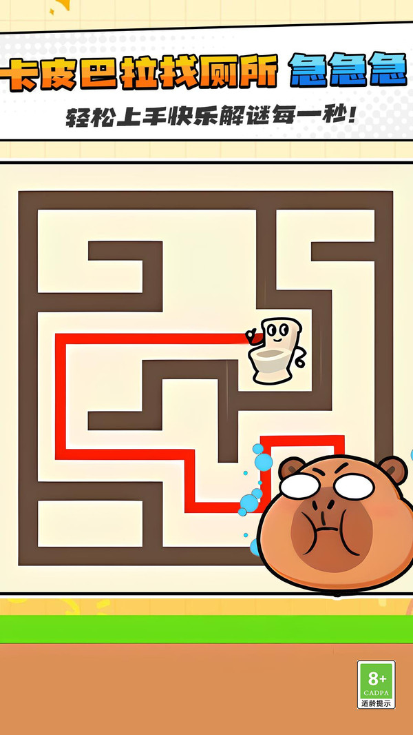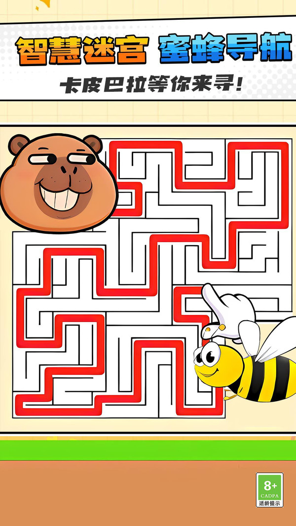 在限定区域内画出连接起点(蜜蜂)与终点(卡皮巴拉)的连续线条,避开红色危险区。