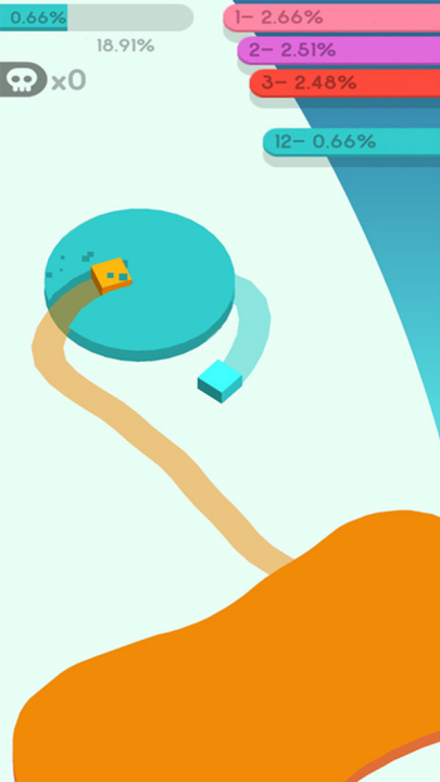 1、首先不能贪心!在这款游戏中圈出的领地自然是越大越好,然而不能一开始就肆无忌惮地跑离领地很远去试图圈出更大的领地,因为这是敌人很有可能乘虚而入,在你无法迅速返回领地自救的时候袭击你后方的尾巴,所以如下图所示:先控制纸片圈出自己的领地。