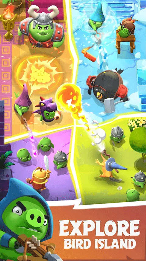 角色收集养成:可解锁红鸟(Red)、恰克(Chuck)和炸弹(Bomb)等经典小鸟角色,每个角色都拥有专属技能树和特殊攻击方式,玩家可提升其能力,组建强力鸟队。
