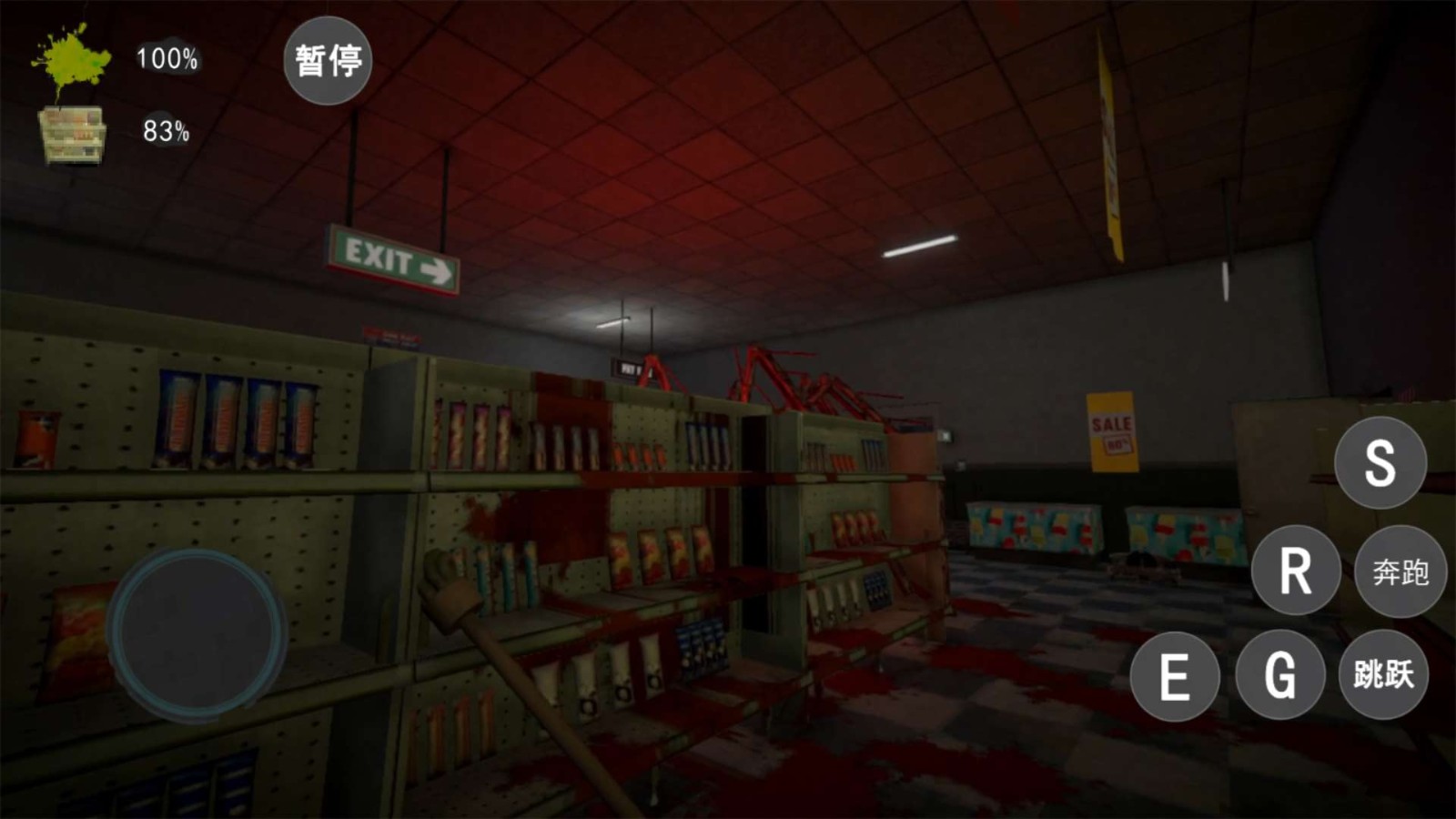 2.采用了第一人称视角的玩法。使用左侧的摇杆控制行动。现在你需要进入到便利店。