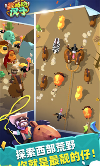 简单易上手的操作:玩家只需滑动手指,就能控制牛仔抛出绳索,在绳索回来的过程中,左右横摆,即可套取各种可爱的小动物。