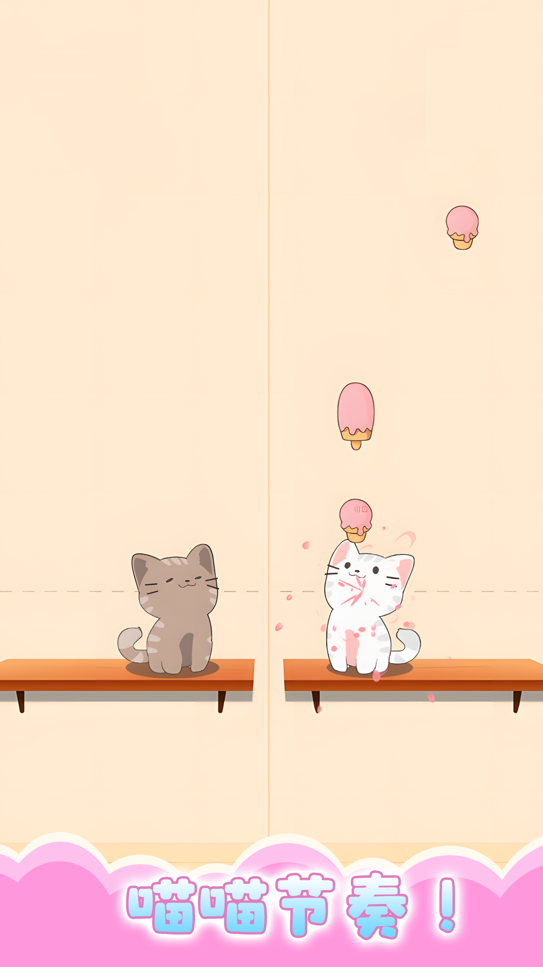 3、当两侧同时有冰淇淋掉落时,可以使用双指分别控制两只猫咪移动。通过分工协作,可以避免遗漏任何冰淇淋,从而更高效地积累分数。