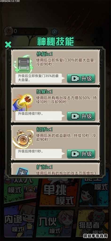 1.队友被攻破,你还可以去售卖他们的武器获得更多的金币,养成自己;这一特色机制让游戏充满变数,即使队友倒下也能转化为自身优势,考验玩家的资源管理能力。2.猛鬼的等级也会不断的提升,等级越高,那么攻击力就会变得越强;敌人会随着时间推移自动进化,玩家必须不断调整防御策略,这种动态难度设计保证了游戏的持久挑战性。3.你可以在游戏中尽情的去进行挑战,展现自己的技术,完成更多的挑战;游戏设有完善的成就系统和排行榜,玩家可以通过完成各种高难度挑战来证明自己的实力。