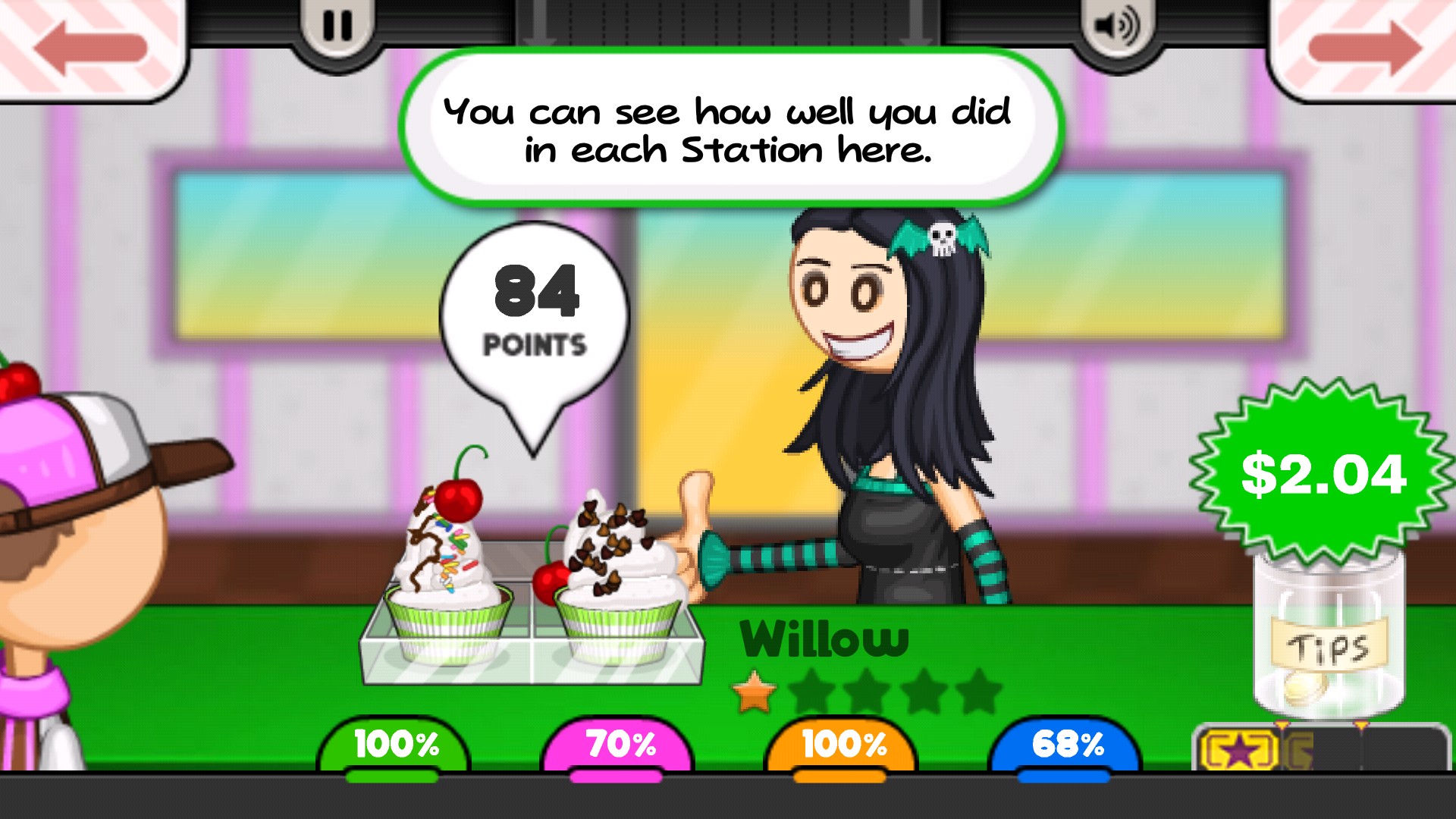 10、做好之后把冰淇淋递给客户,我们获得了84的评分和2.04美元