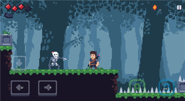 3、左边的两个键是左右移动,右边的A键是攻击,B键是跳跃