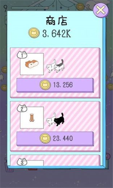 1、游戏中设有丰富的猫咪养成系统,玩家可以收集各种可爱的猫咪,并通过互动培养感情,每只猫咪都有独特的性格和喜好;