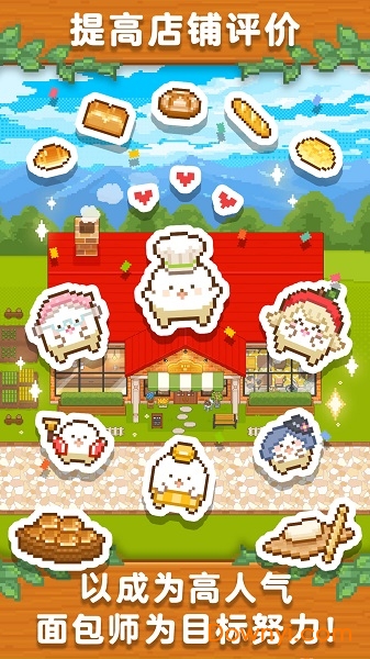 2、画面清新精美,采用精致的像素风格,每个面包的细节都栩栩如生,玩法自由灵活;