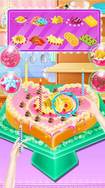 装饰环节是游戏最精彩的部分,玩家可以使用各种工具将水果切成心形、星形等可爱形状,制作出色彩缤纷的果酱。涂抹奶油时要注意力度和角度,才能做出光滑的表面或漂亮的花纹。巧克力装饰更是考验技巧,需要掌握好温度和流速,才能画出精致的图案。