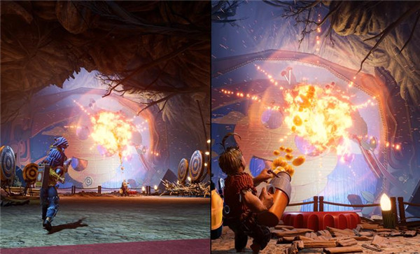 合作模式:这是游戏的核心玩法,玩家可以选择本地合作或在线联机,通过分屏显示,与好友一起面对各种挑战。游戏中,两人需要紧密配合,比如一方吸引敌人注意,另一方趁机通过障碍,或同时行动触发机关等。
