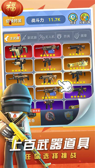 4、真实枪械弹道,爽感射击体验,几十种枪械属性各异,灵活使用应对不同战场:还有加特林,火箭筒等强力武器等你解锁;
