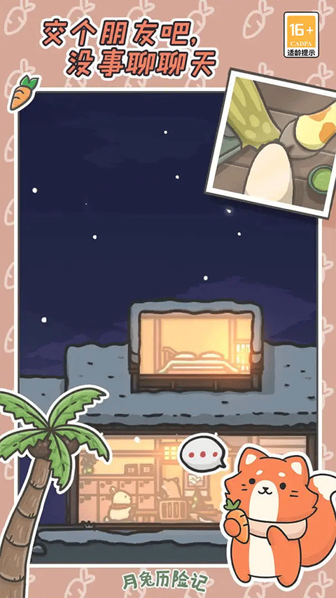 时间系统:游戏中的时间系统与现实时间同步,白天小镇热闹,居民们都出来活动,夜晚小镇则变得安静祥和,月兔可以在自己温馨的小屋里休息,让玩家更容易代入游戏角色,感受真实的生活节奏。