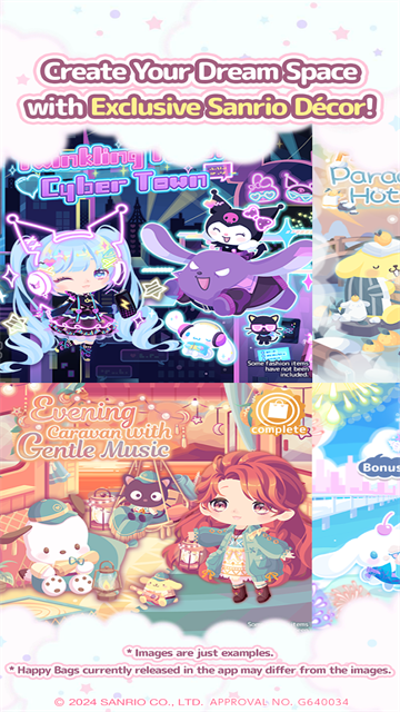 个性化装扮:提供丰富的 avatar 装扮系统,玩家可用三丽鸥主题的可爱设计和各种服装打扮自己的游戏形象,展现独特风格。