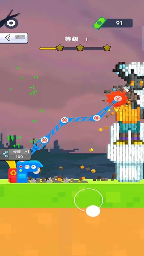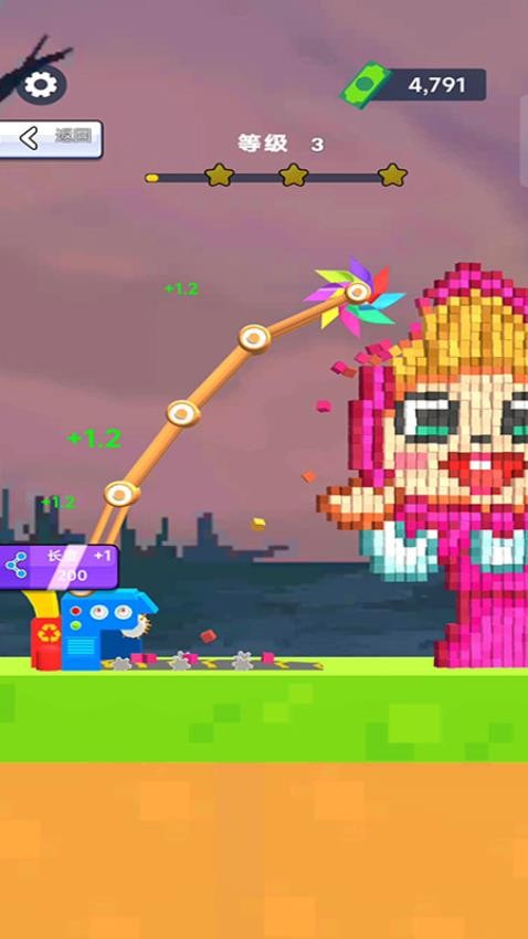 1. 简易操作带来极致粉碎快感,通过机械设备摧毁所有可破坏的立方体,击碎方块数量与得分成正比,挑战性随进程不断提升。