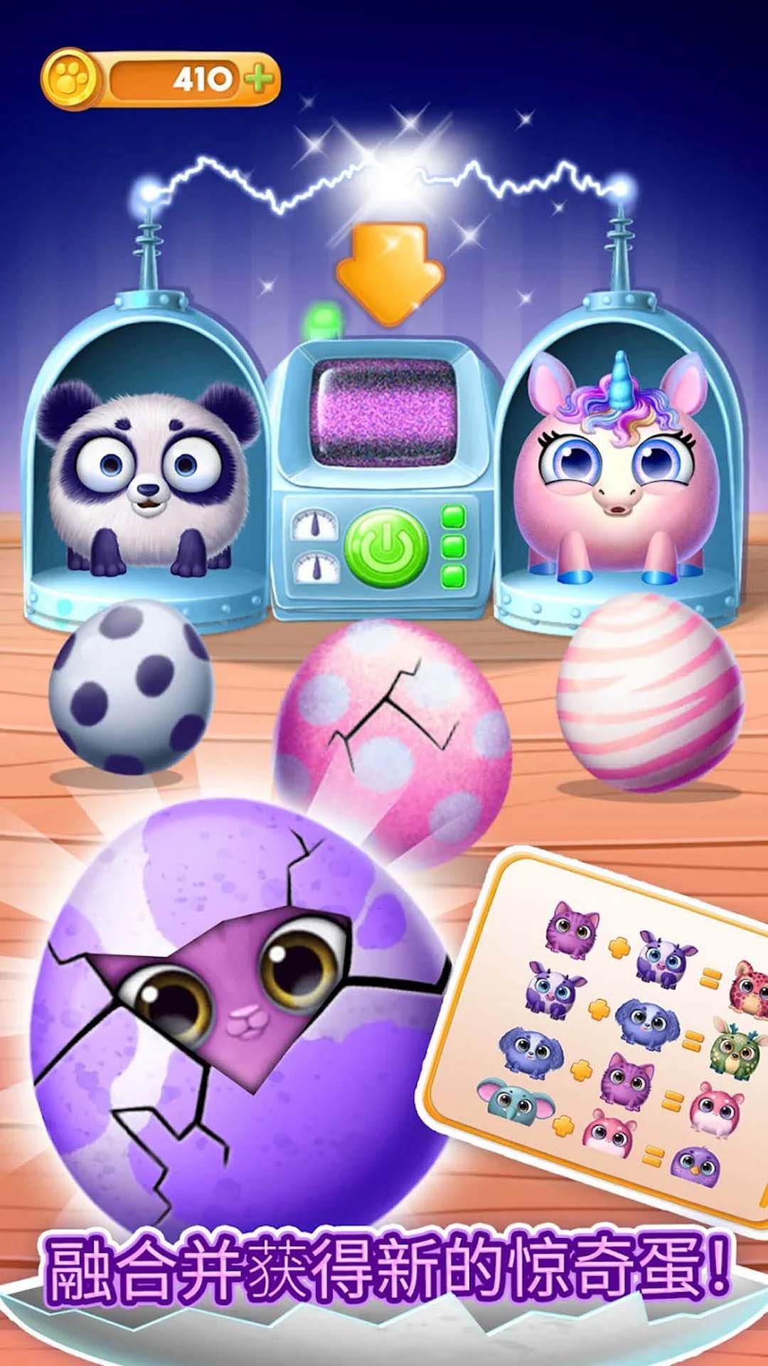 1.以清新可爱的画风构建奇幻宠物世界,玩家通过孵化宠物蛋结识各具特色的精灵伙伴,打造专属的温馨家园。