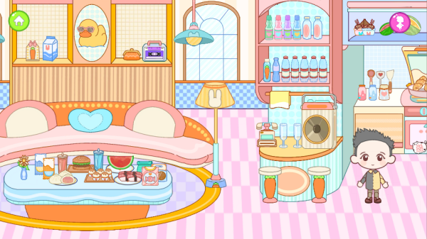 1、游戏采用高饱和度色彩与柔和卡通渲染,构建出童话般梦幻的别墅、商场、乐园等场景,每一处细节皆可交互。
