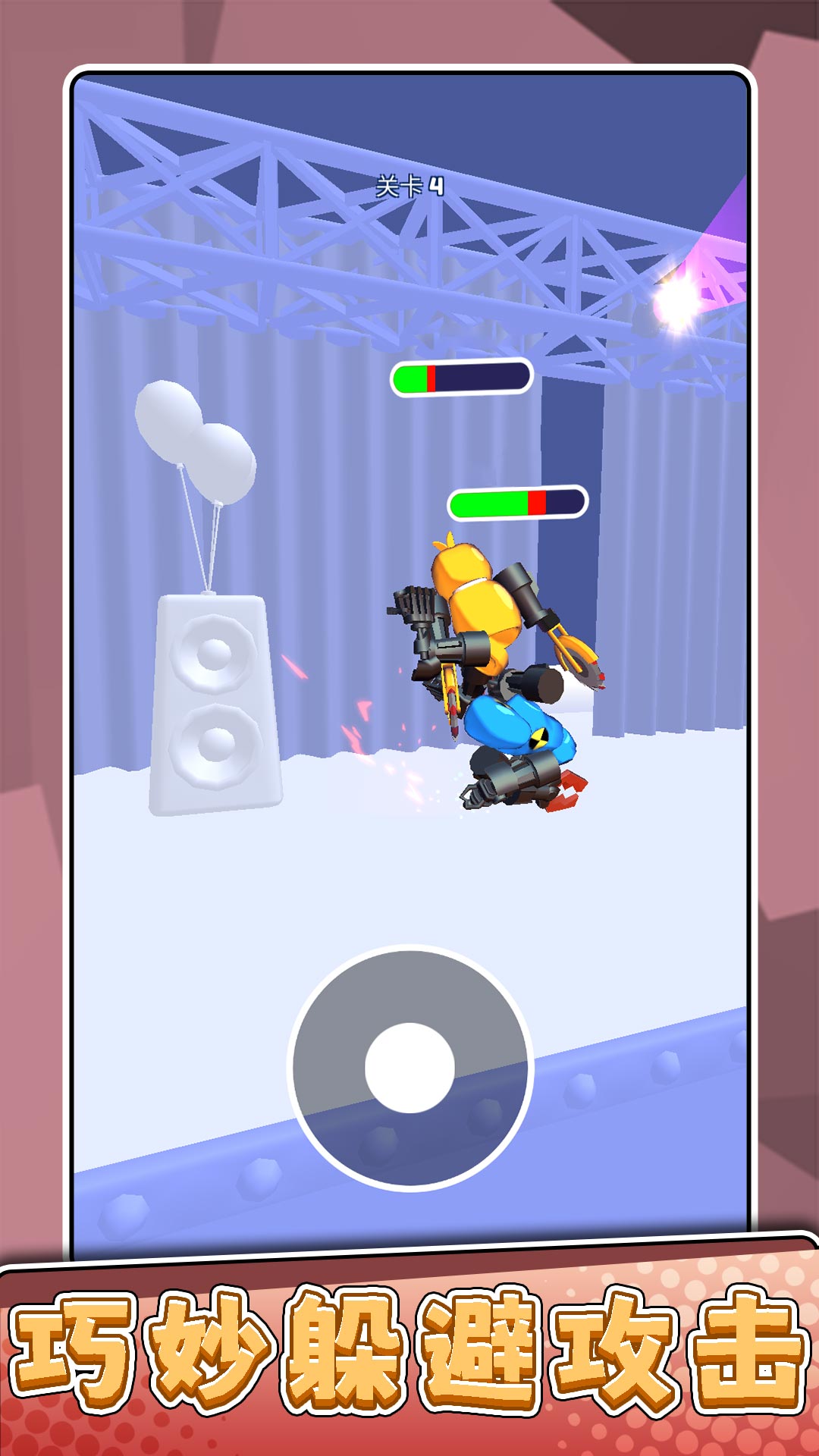 3、每个机器人角色拥有专属搞笑技能,如地面撒油滑行或召唤啦啦队干扰对手行动。